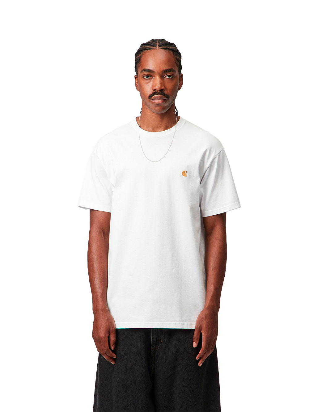 Le T-shirt Chase White Gold de Carhartt WIP est un essentiel en coton au style minimaliste. Confortable et intemporel, il s’intègre parfaitement dans un vestiaire casual ou streetwear.