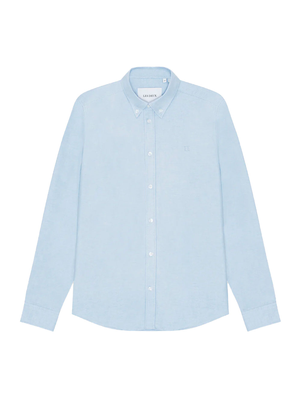 Chemise Konrad Oxford bleu clair par Les Deux, un classique casual chic. Coupe regular fit confortable en coton avec col boutonné, parfaite pour un style sophistiqué au quotidien.