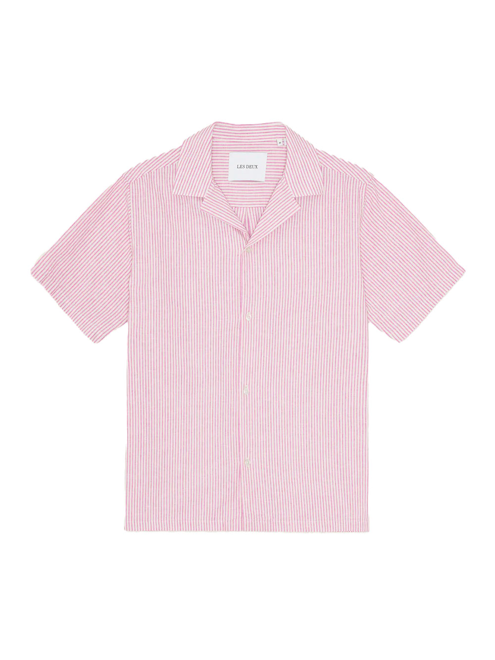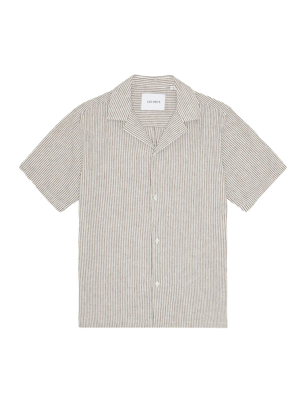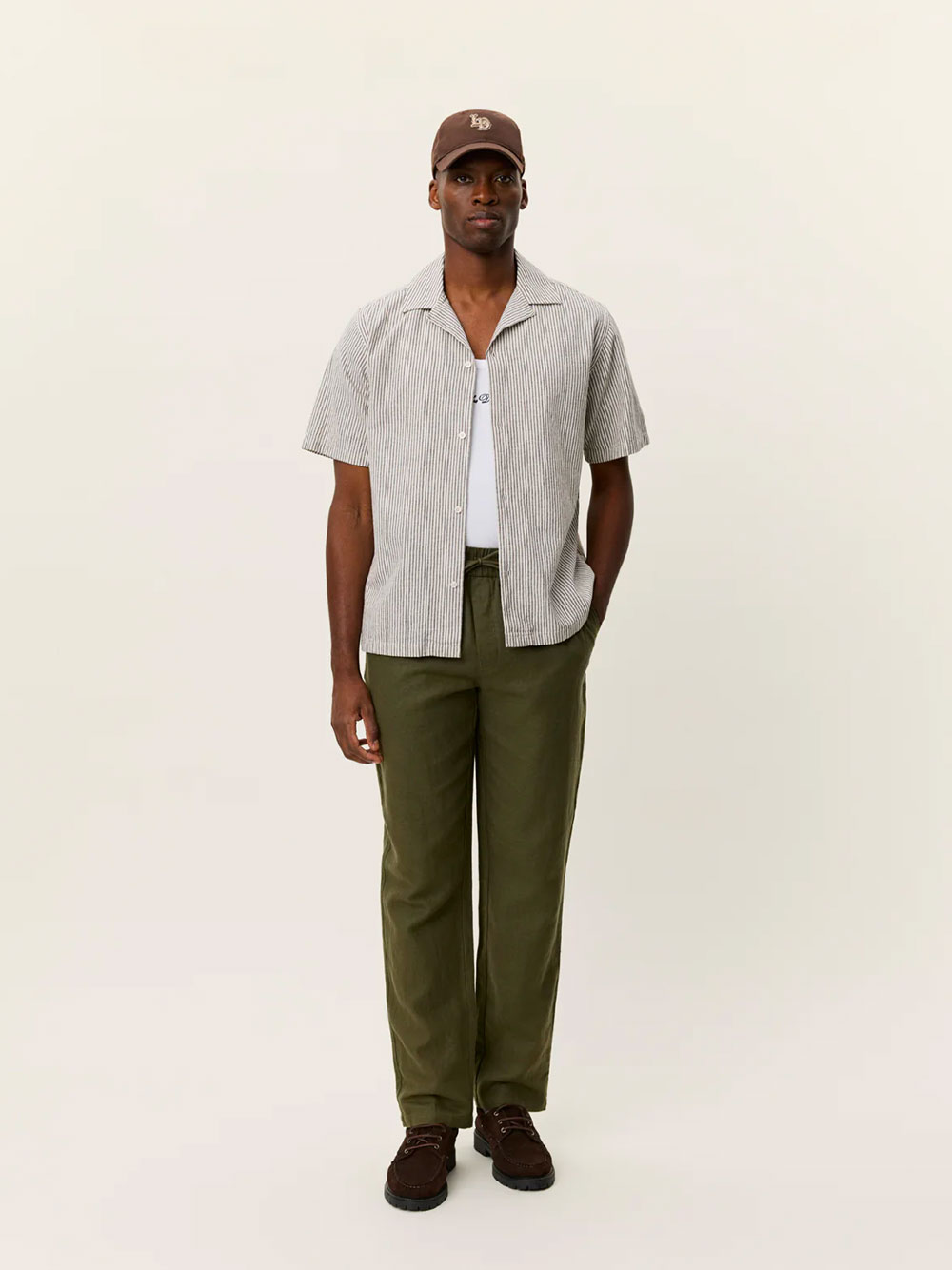 Une chemise légère à manche courte en mélange coton-lin respirant, ornée d’une rayure verticale classique. Dotée d’un col cubain décontracté et d’un tombé net et facile.