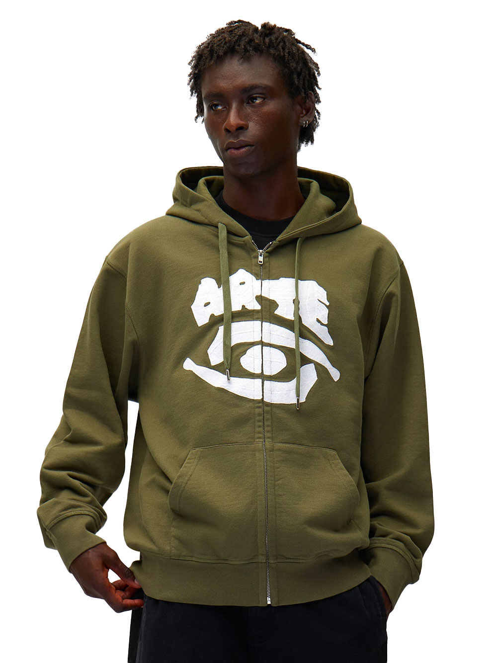 - capuche verte fermeture éclair poches avant capuche à cordon de serrage