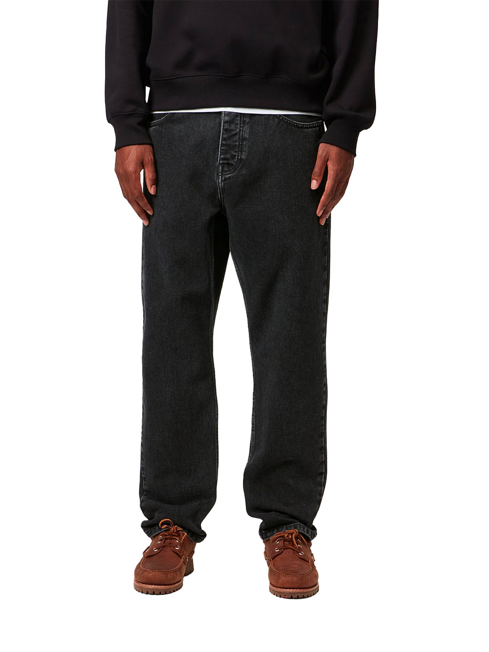 Le Newel Pant Black Stone Washed de Carhartt WIP est un pantalon denim noir stone washed à coupe relaxed tapered, offrant confort, style workwear moderne et grande polyvalence au quotidien.