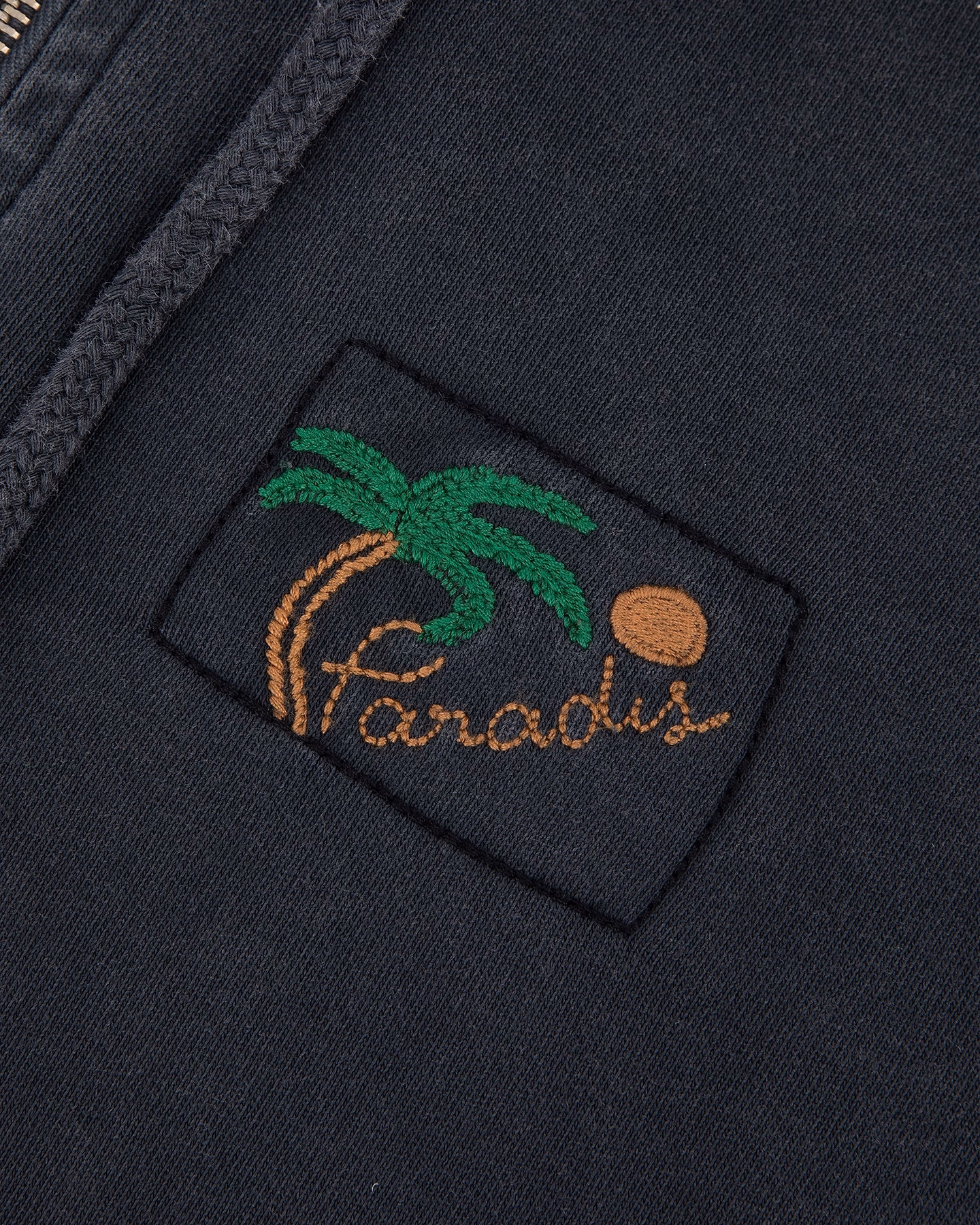 Le Palm Tree Gourgaud Hoodie de Maison Labiche est un sweat en coton avec broderie estivale pour un style décontracté et moderne.