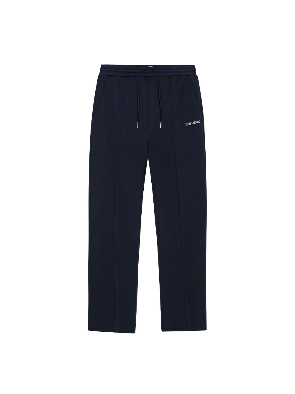 Pantalon Ballier Casual Track Pants bleu marine par Les Deux : mélange parfait de streetwear et élégance moderne. Coupe décontractée avec plis pressés et taille à cordon pour un confort urbain
