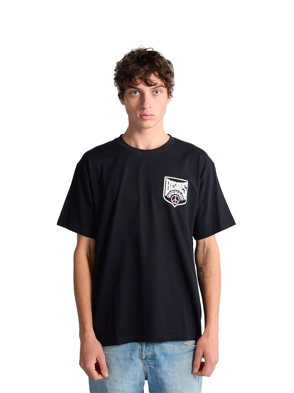Le T-shirt Blason White de Bisous Skateboards est un T-shirt en coton blanc avec motif blason graphique sur le devant, combinant confort casual et style skate urbain moderne.