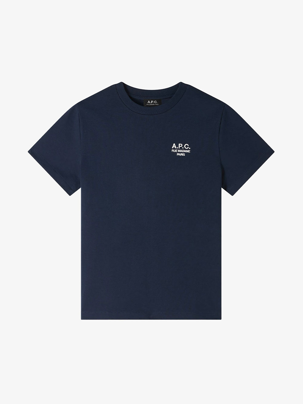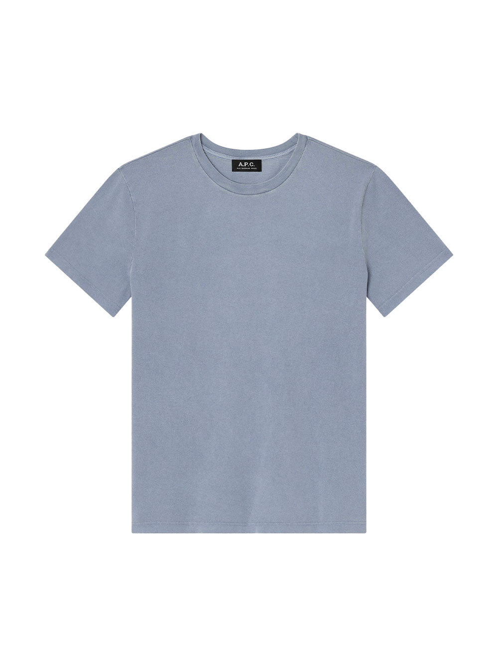 T-shirt bleu A.P.C. Standard Rue Madame en coton bio épais, coupe droite confortable et logo brodé signature.