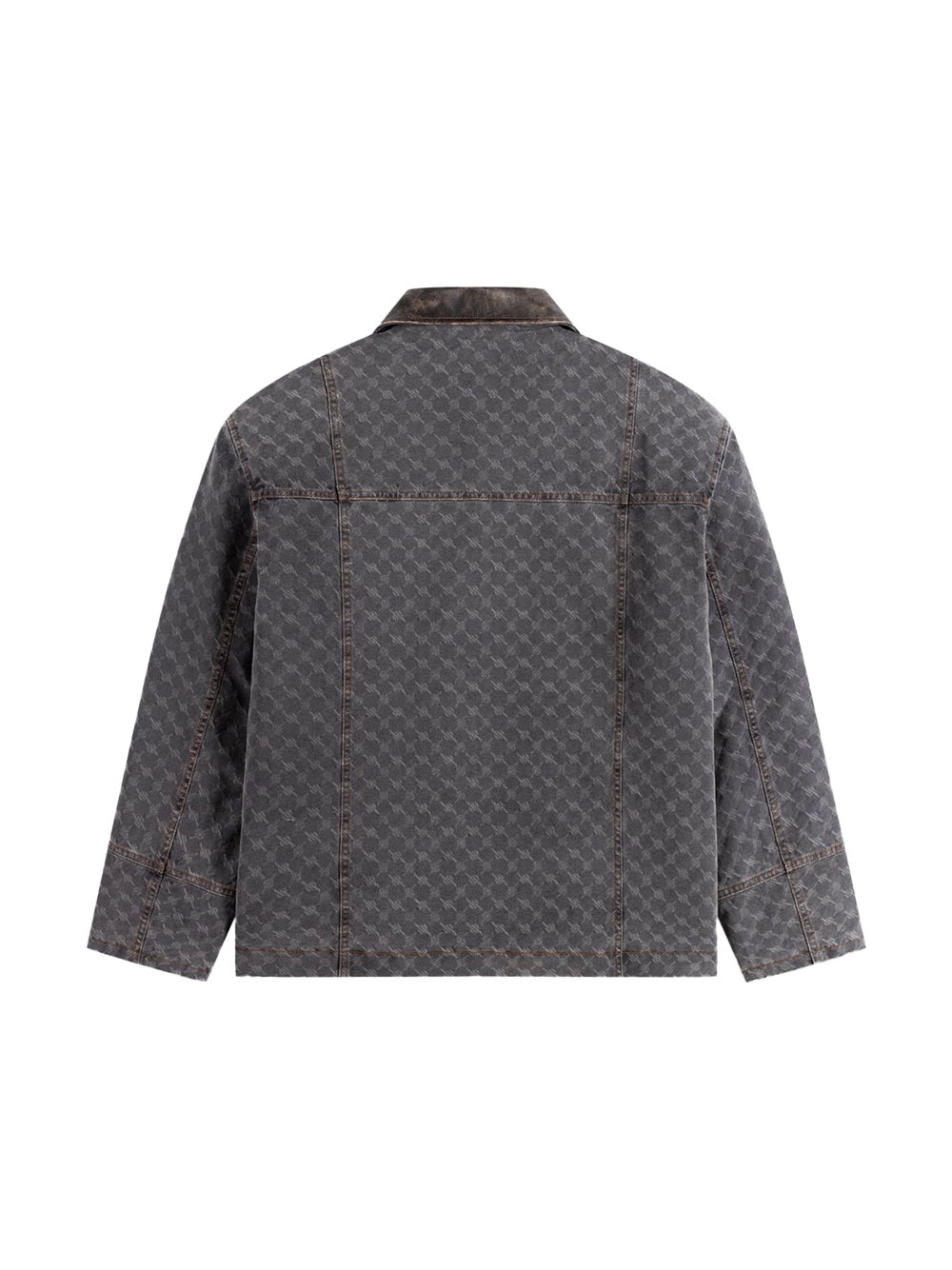 La veste de travail Monogram est confectionnée en denim épais 100 % coton délavé, ornée d’un motif monogramme imprimé laser sur toute la surface. Cette veste cargo matelassée oversize est dotée d’un col en cuir classique, d’une fermeture à boutons à queue et de poches latérales avant avec empiècements cousus. Le bord franc, les poignets et l’ourlet effilochés lui confèrent une touche robuste, tandis qu’une poche intérieure offre un confort optimal.