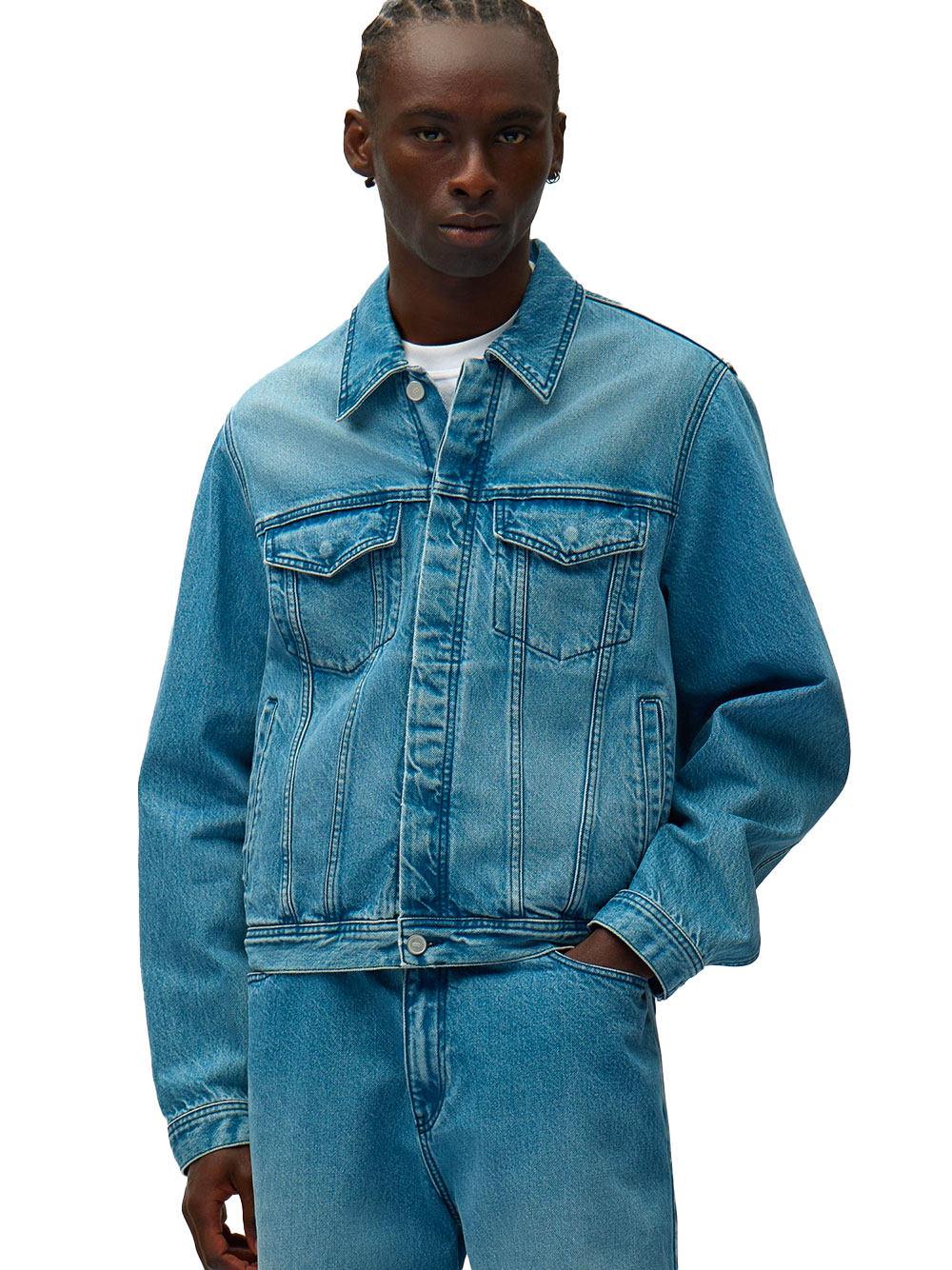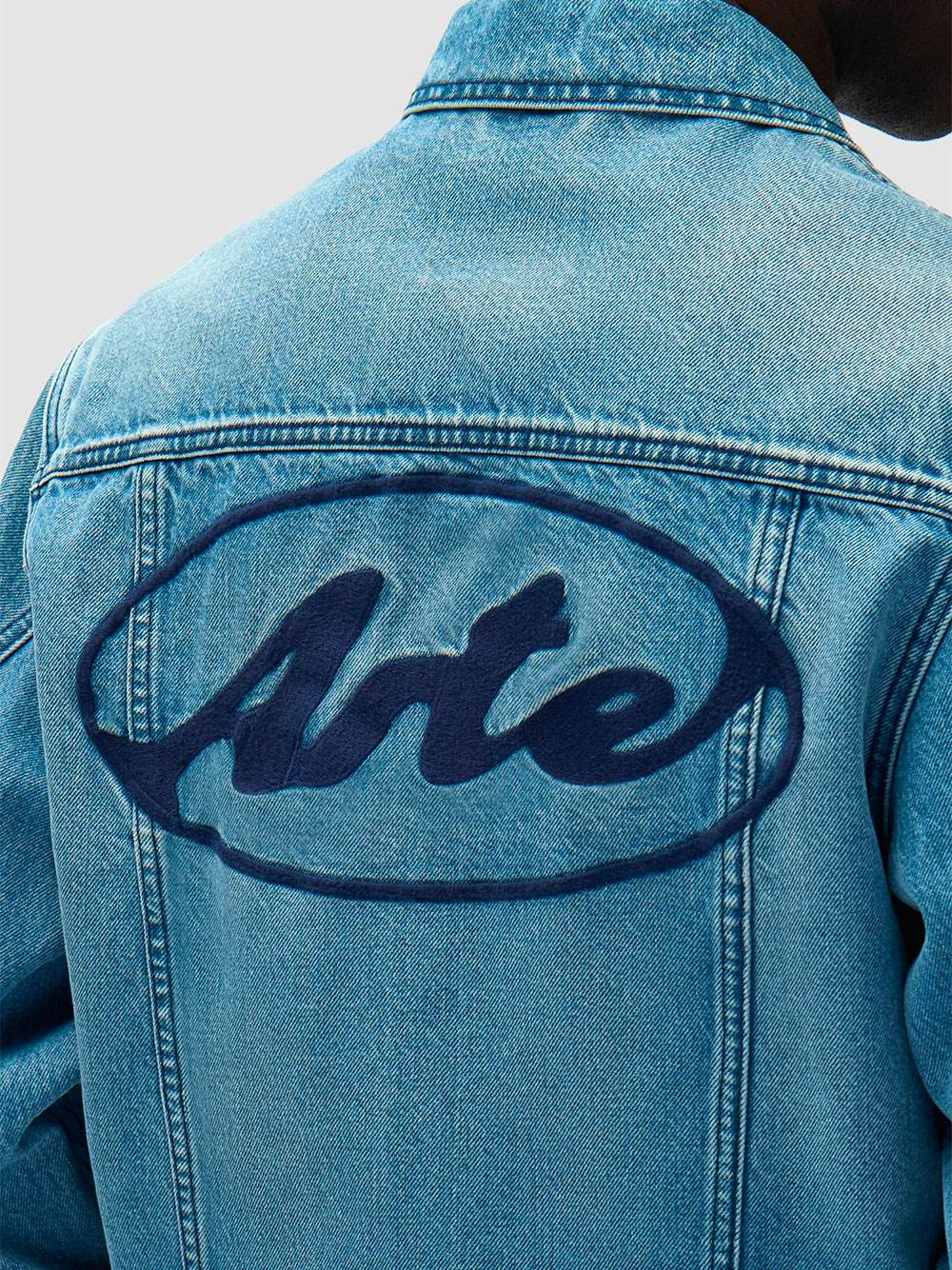 Confectionnée dans un denim haut de gamme, cette veste arbore le logo Arte de la saison brodé en bleu marine dans le dos. De couleur bleu clair délavé, elle est dotée de poches poitrine classiques, de deux poches latérales et d’une patte de boutonnage dissimulée.