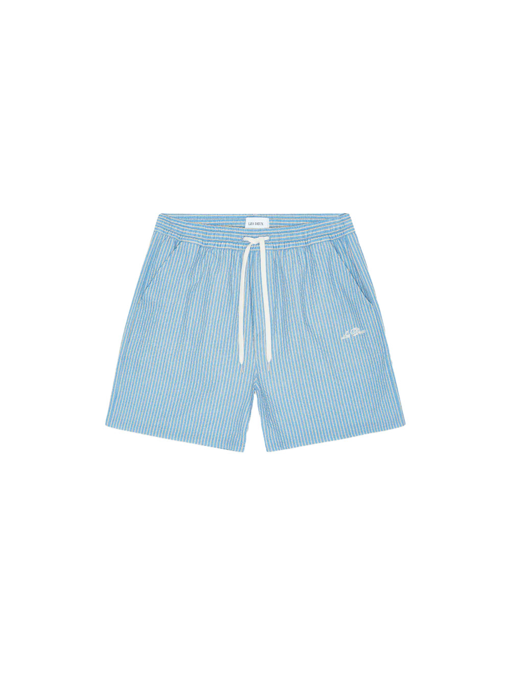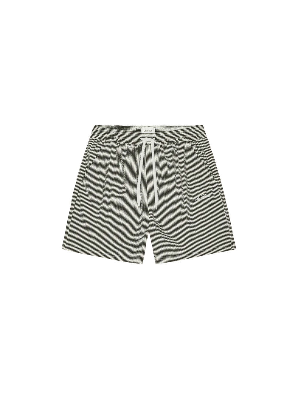 Lightweight swim shorts in textured waffle fabric. Designed with an elasticated drawstring waist and a small embroidered detail on the front.