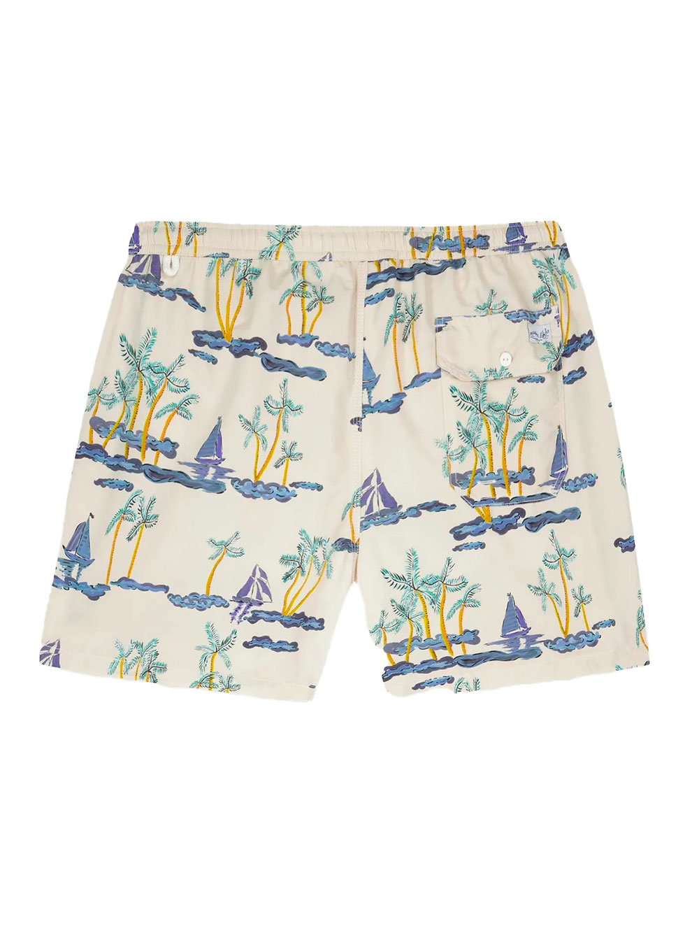 The Boats Print Maison Labiche swim shorts are a dynamic and comfortable summer piece.